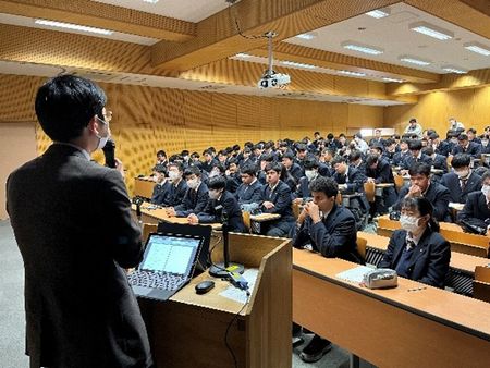 2月2日(月) の1.2時間目に、視聴覚室にて明日から始まるインターンシップの事前指導を行いました。