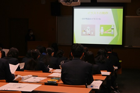 企業様都合で別日に見学に行く生徒には、課題研究の発表やインターンシップの成果発表会の動画を見て、今後のイメージを膨らませてもらいました。
